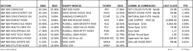 - International stocks outperformed U.S. equities in both currency and USD terms; AI-related stocks contributed the most to the S&P 500 Index.