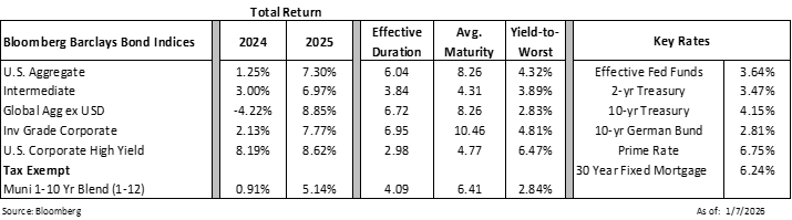 International equities outperformed the U.S. in both local-currency and USD-denominated terms, although notably most of the excess gains occurred during Q1 2025. Growth stocks also dominated with AI-related equities contributing the most to the returns for the S&P 500 Index. The S&P 500 Index has more than doubled since mid-October 2022, and we expect the bull market to continue given a combination of robust economic fundamentals, policy tailwinds, and innovation.